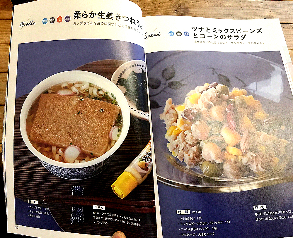 この本のレシピは、食材が限られた環境でも作れるメニューの紹介だけでなく、災害発生直後からすぐに出来る食事から、ライフラインなどの回復度合いによって、段階を踏まえたレシピが紹介されています。