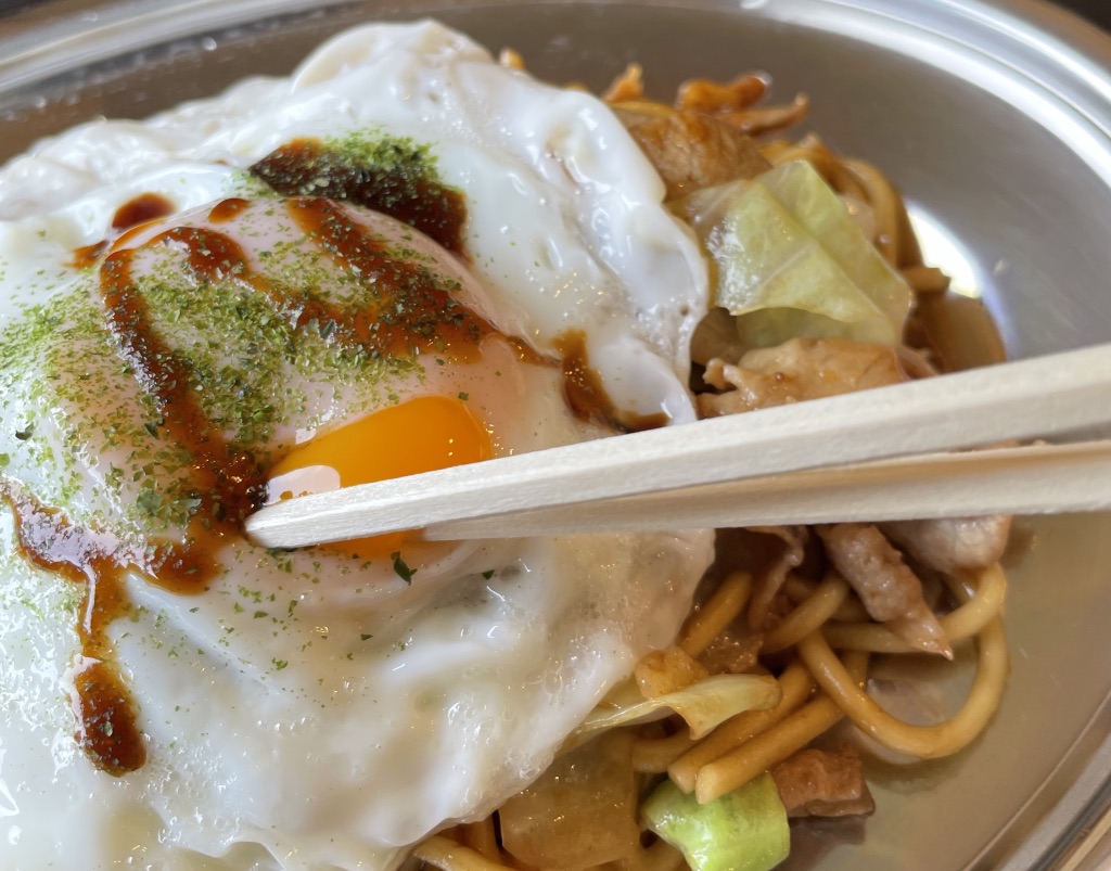 半熟目玉焼き乗せ焼きそば