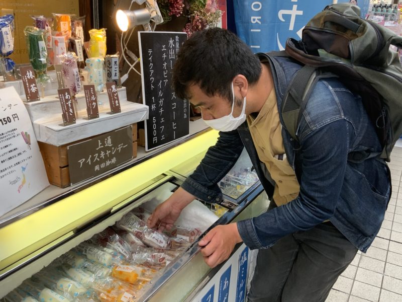 色々ある中で、イチオシしたいのが、夏になると上通アーケードの入り口で販売が始まる「岡田珈琲」のアイスキャンデー。