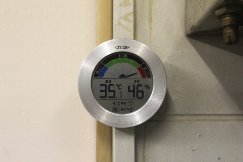 やってきた部屋の温度は35℃。まさかとは思いますが、この真夏日のような室温の部屋で作っています。