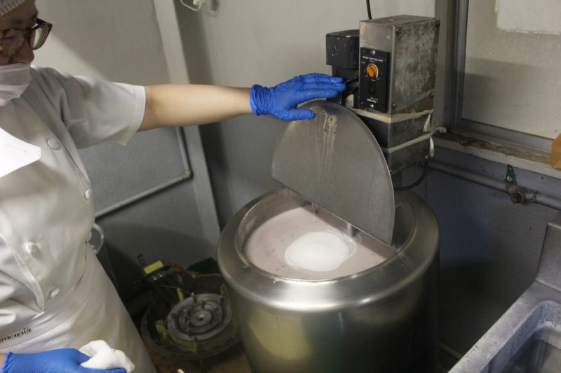 いつもすごい量がアイスケースに入っているので、ある程度機械化されているのかと思いきや、まさかの手作業…。しかも素材から。