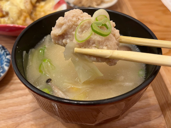 かなり具沢山。大きなつくねも入っています。つくねは手作りでふわっふわです。