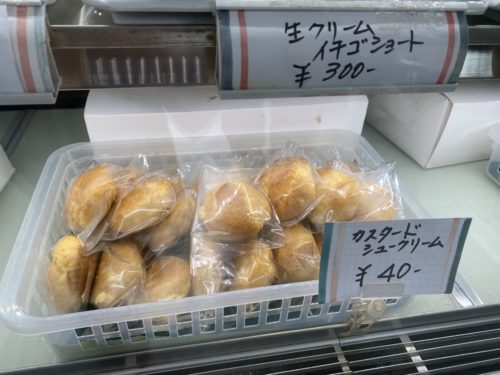 ありました!シュークリームがなんと1個40円!カスタードクリームとチョコクリームの2種類あります。