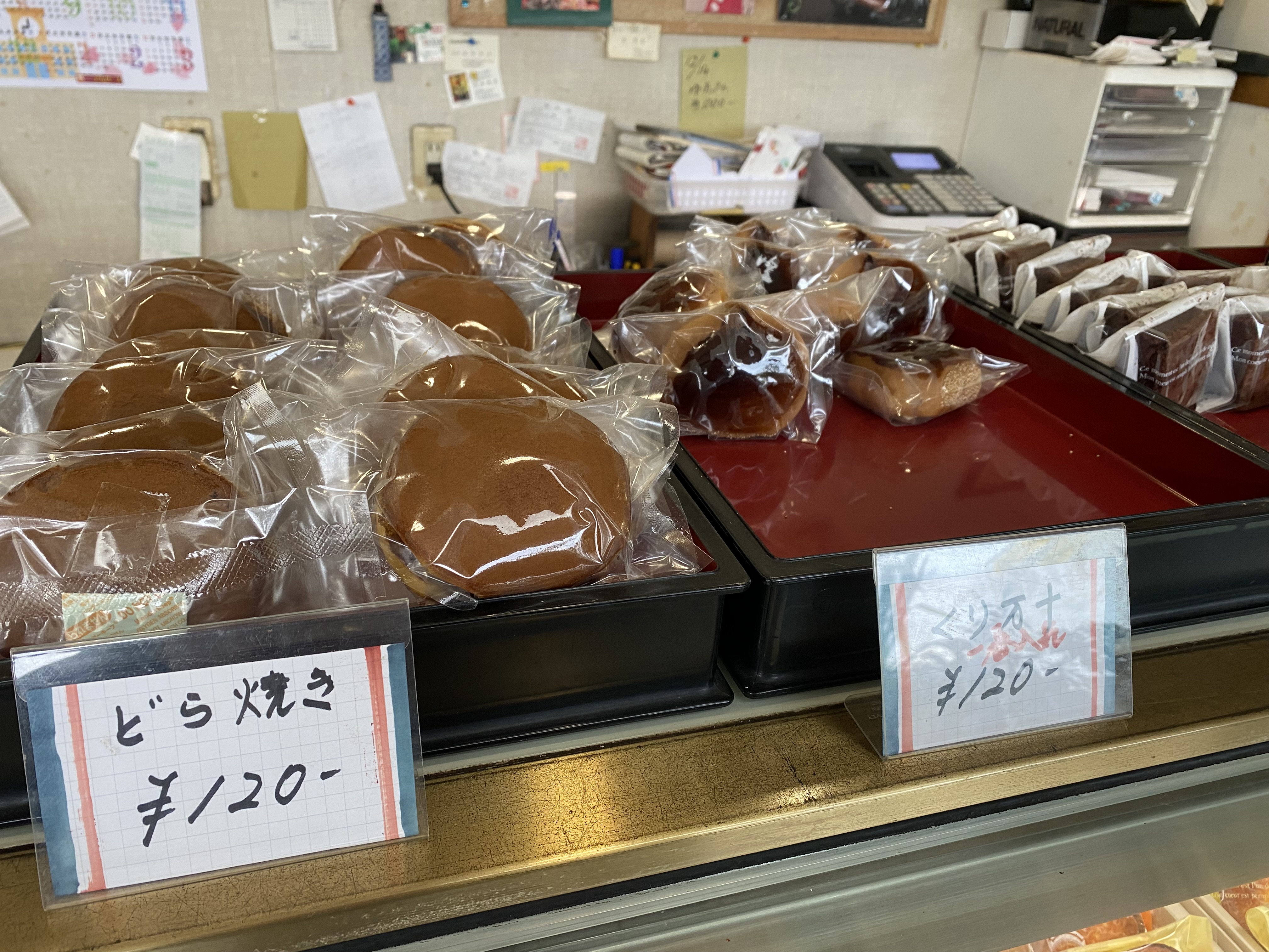 更に、どら焼き120円、くり万十110円
