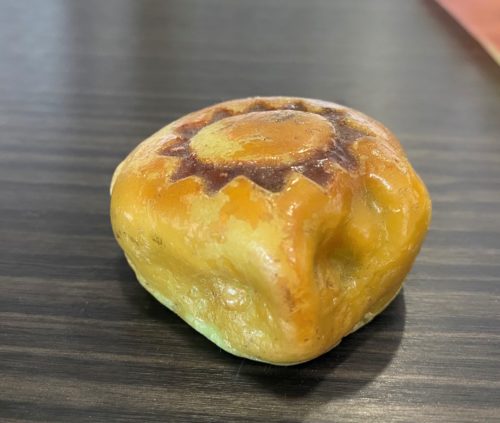 横顔も端正な顔立ちです。中は抹茶あんが入っているそうです。