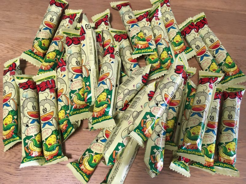 うまい棒食べるならコーンポタージュ味!の私は、うまい棒コンポタ味30本も大人買いしてみましたが、これで1本8円(税抜)。もう、今日からうまい棒を主食にできそうなほどの量です。