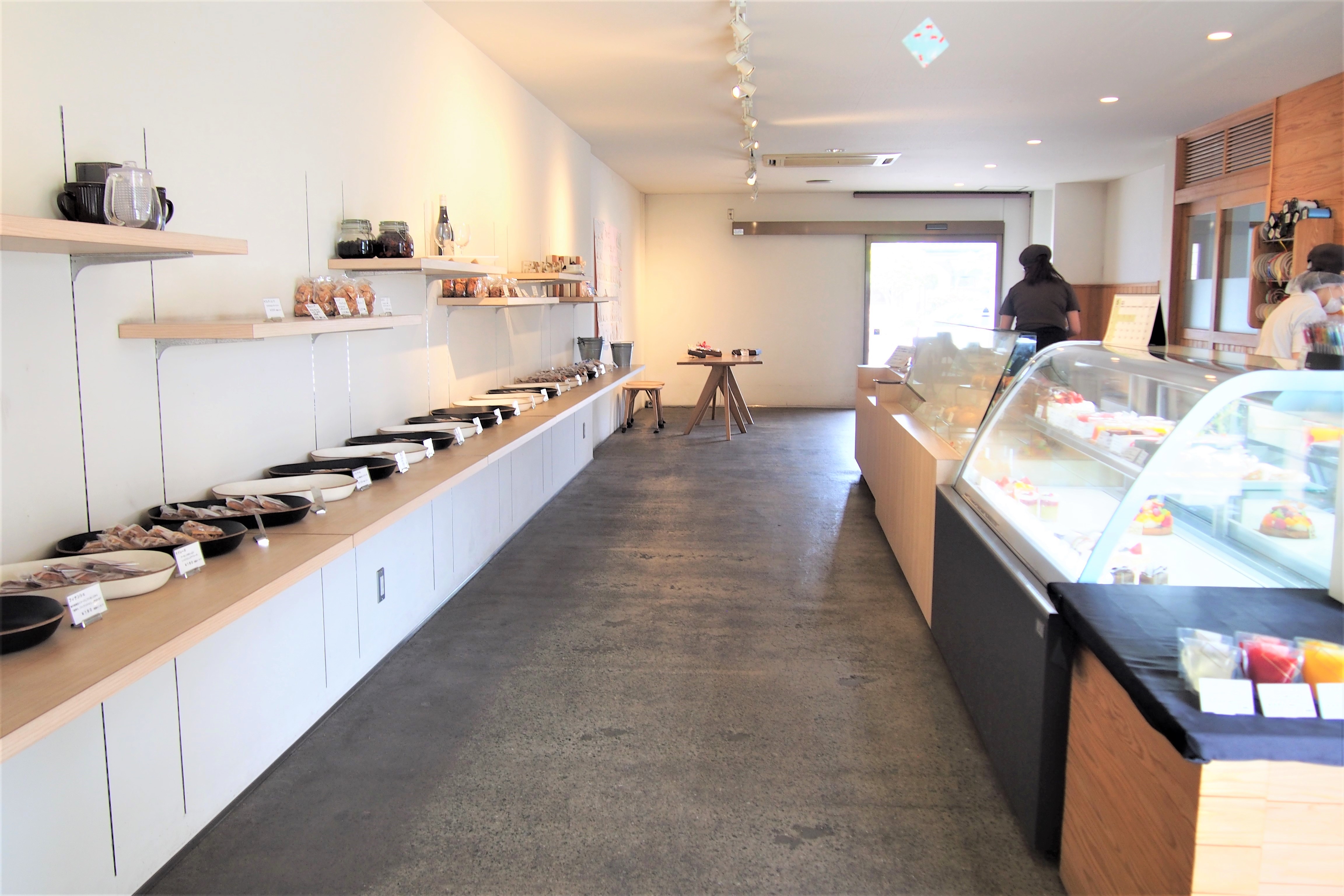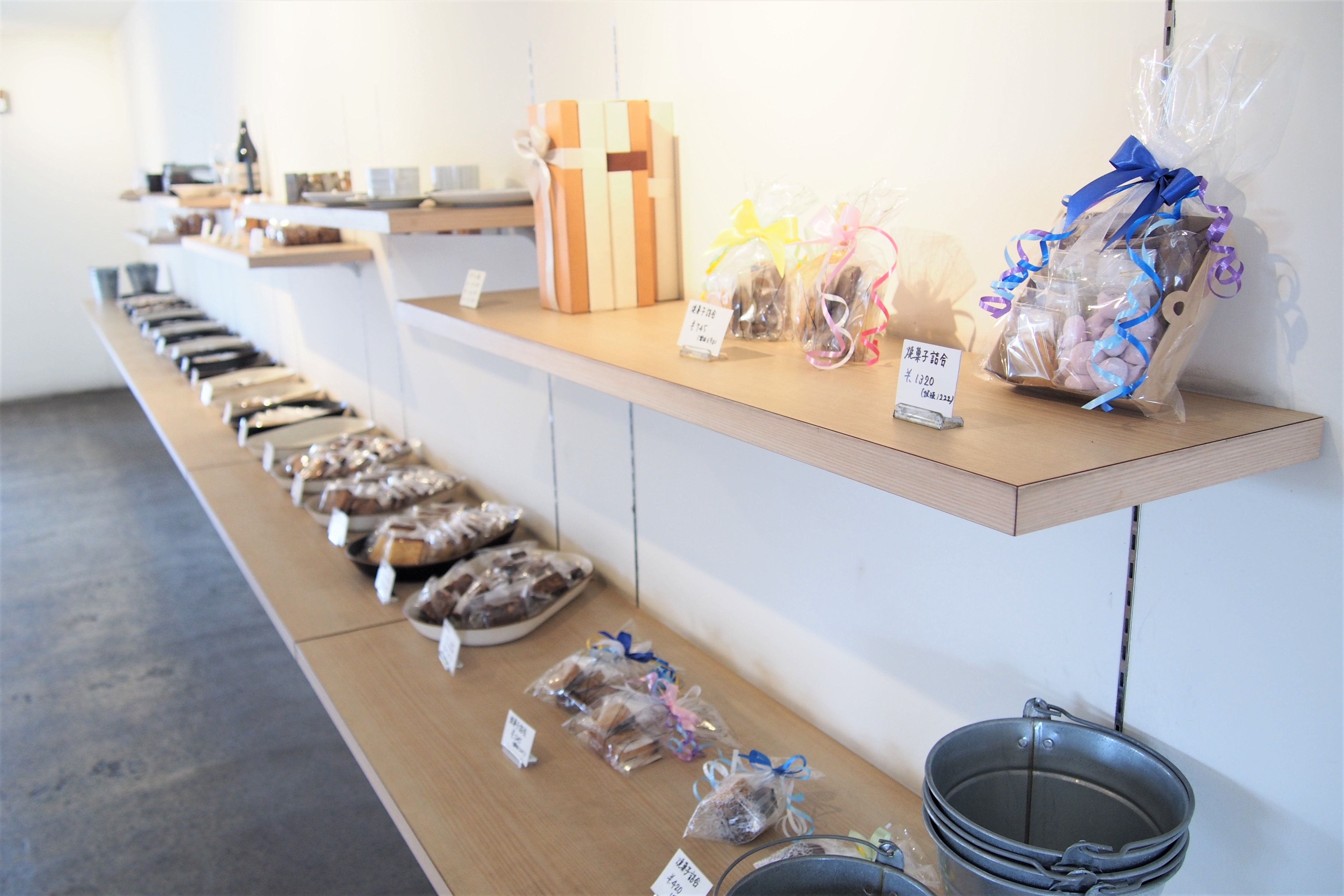 店内は、シンプルながらも主役の焼き菓子やケーキを引き立てる余白の空間を上手に使ったオシャレな雰囲気です。