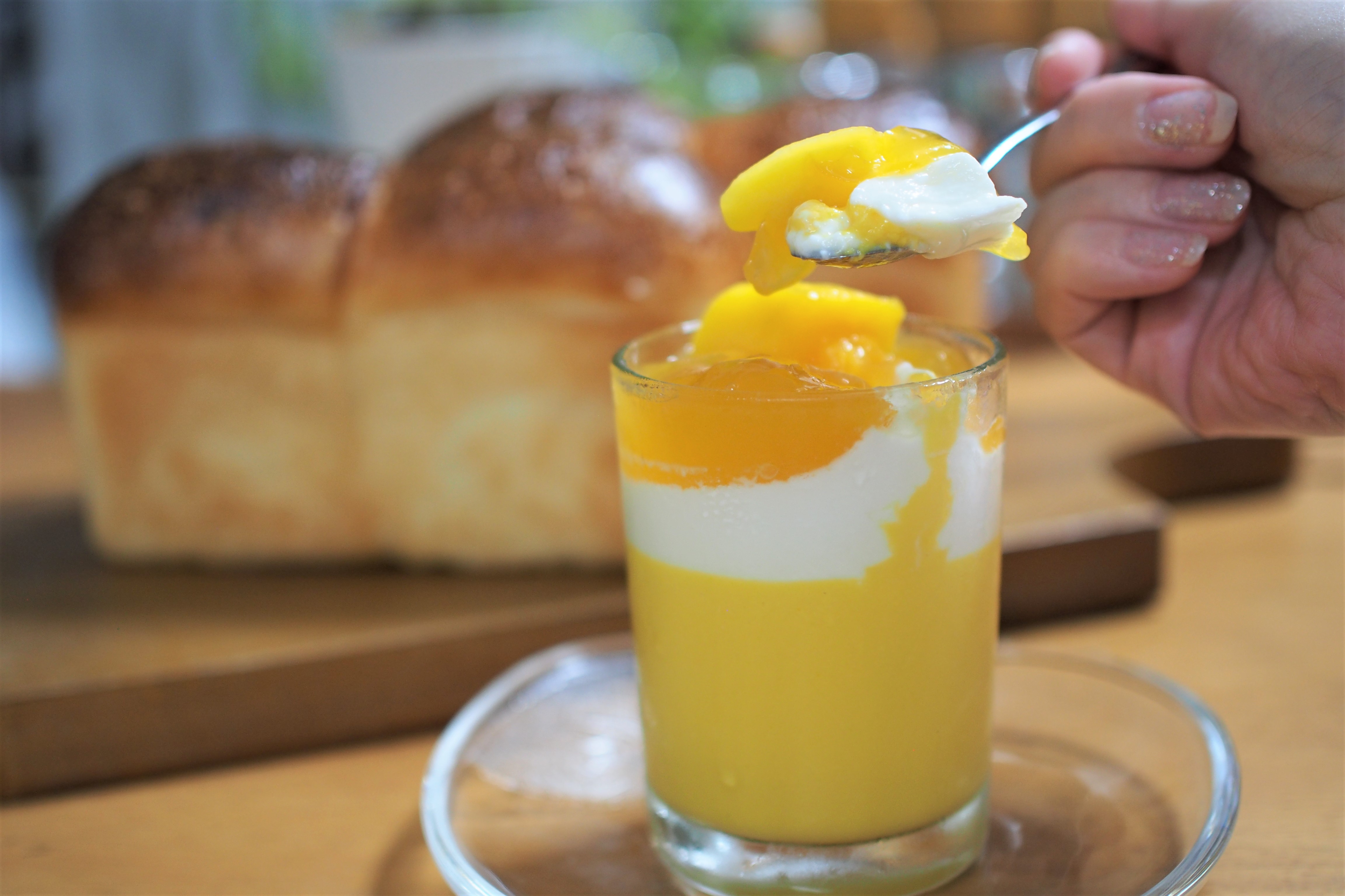 マンゴープリンにココナッツのブランマンジェとパッションのジュレ ¥430(税込み)
