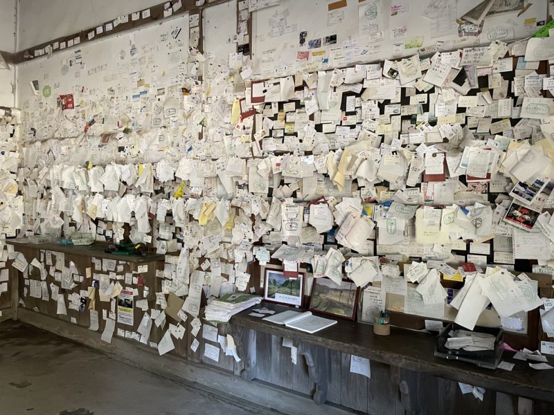 大きい紙には、夏目友人帳へのメッセージや、訪れた足跡を残すメッセージが書かれていました。