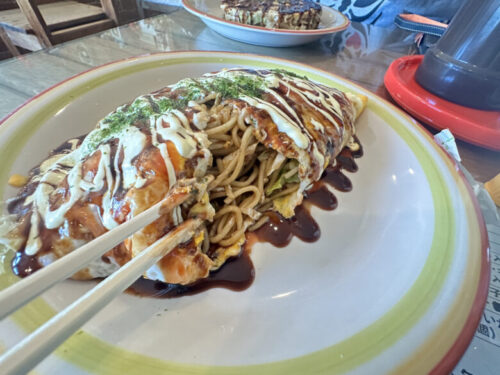 野菜たっぷりで具のしっかり詰まったモダン焼