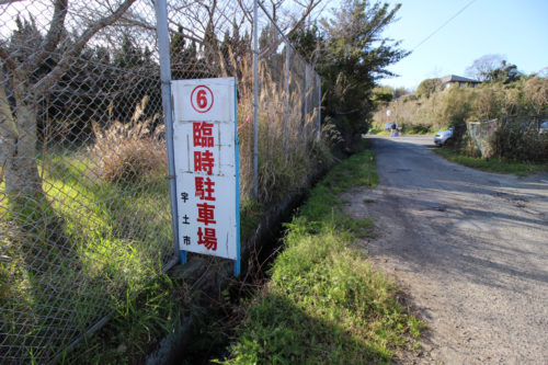 高台に至る道沿いにあるので、出遅れた場合はこちらを利用します。路上駐車は避けましょう。臨時駐車場から撮影ポイントまでは、徒歩20分ほどです。