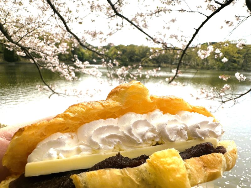 桜とアンバタークロワッサン。