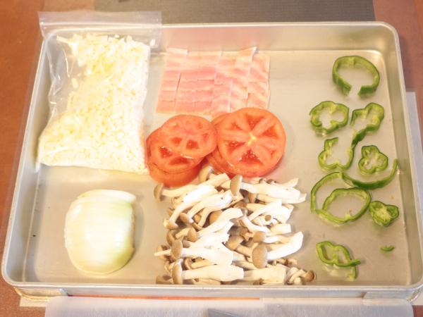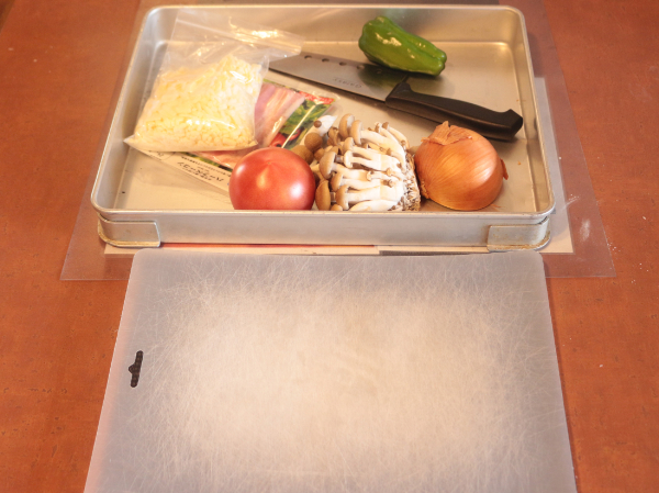 「奥あそフルーツガーデン」のおすすめは石窯ピザ作り体験ということで、早速私も体験させて頂きます!最初に出てきたのは、たくさんの野菜とそれを切るための包丁とまな板。