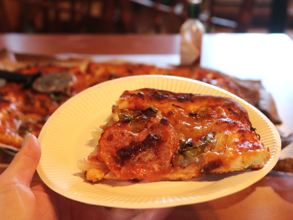 ちなみにオリジナルのピザソースが絶品。トマトにガーリックがしっかりと効いています。食べきれなかったピザは持って帰ることもできるので安心。