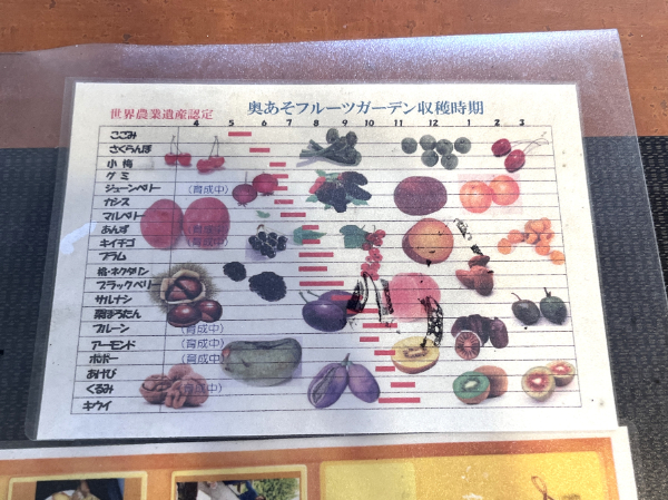「奥あそフルーツガーデン」ではこんなに作物を育てているそうです!めちゃくちゃ多い!そして、栽培されているのをみたことないものもあります!