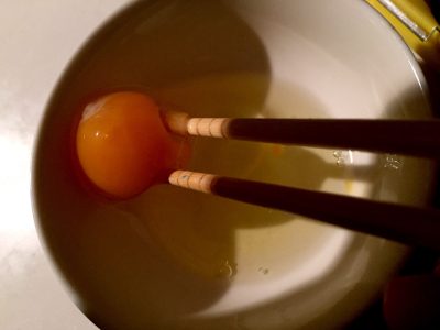 購入したキセキの卵は(6個入り2パック346円)箸で摘まめるぐらいモッチリです!!