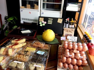 オムライス、鶏めし、たまごサンド、巻きずしの惣菜(200円~350円)やシフォンケーキやぼうろ、クッキーなどのスィーツも豊富な卵料理があります。