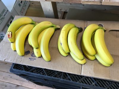 痛みやすいバナナはできるだけ本体に重みがかからないように、置き方にも一工夫。クオリティーに妥協を許さない店主の信念が感じられます。