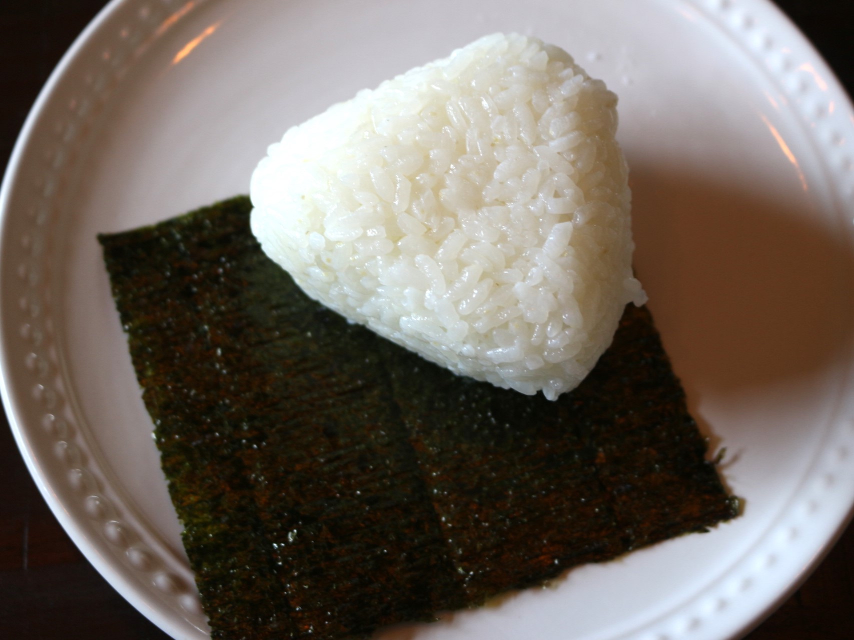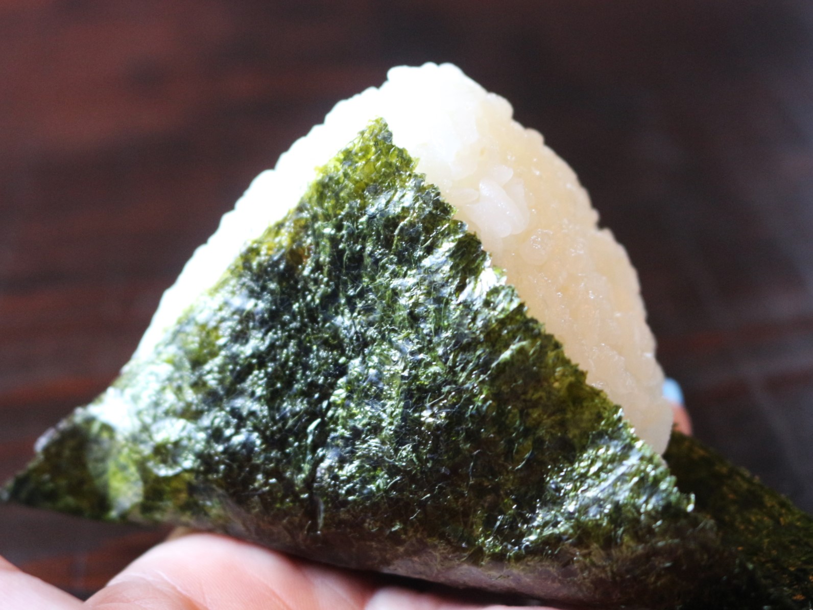 海苔の巻き方合ってるかな…と悩みながらも三角おむすび完成。