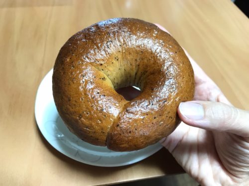 ミルクティーのベーグル(240円)は、ボリュームもしっかりあって、表面はつやつや!一口頬張るやいなや、紅茶の茶葉の香りが口いっぱいに広がり、なんとも贅沢な気分です。