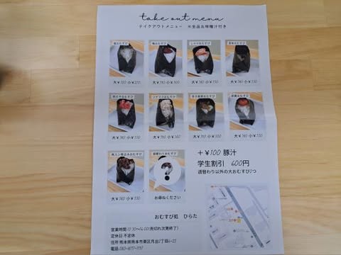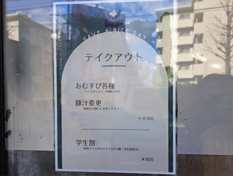 学生割は週替わり以外の大おむすび2個で600円なんです!