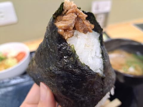 こちらのおむすびも中にも馬スジが入っていますよ。