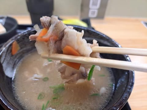 お味噌汁は付くし、なんなら+100円で豚汁に変更したら野菜やたんぱく質もとれちゃう!