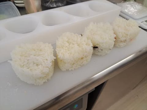 こちらは小おむすびの海苔を巻く前ですが、見ていただけると小でも分厚さやお米の多さが丸わかりかと思います。