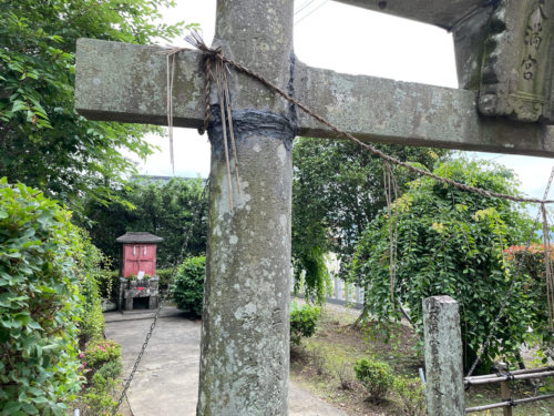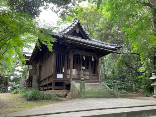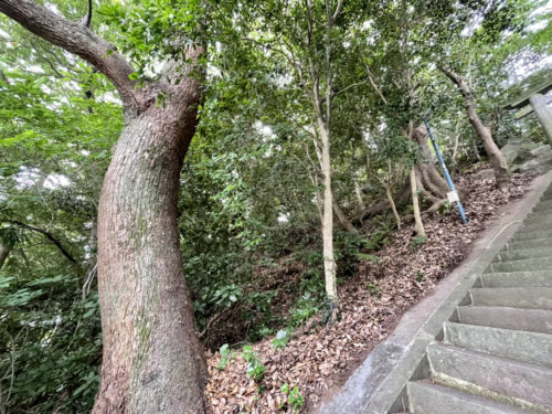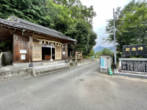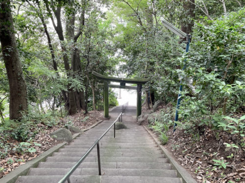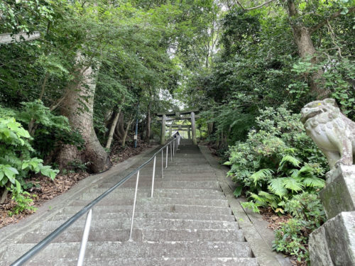 近づいてみると、山の麓に見えるのは鳥居と石段。隣に拝殿がありますが、本殿は石段から続く山上にあるようです。
