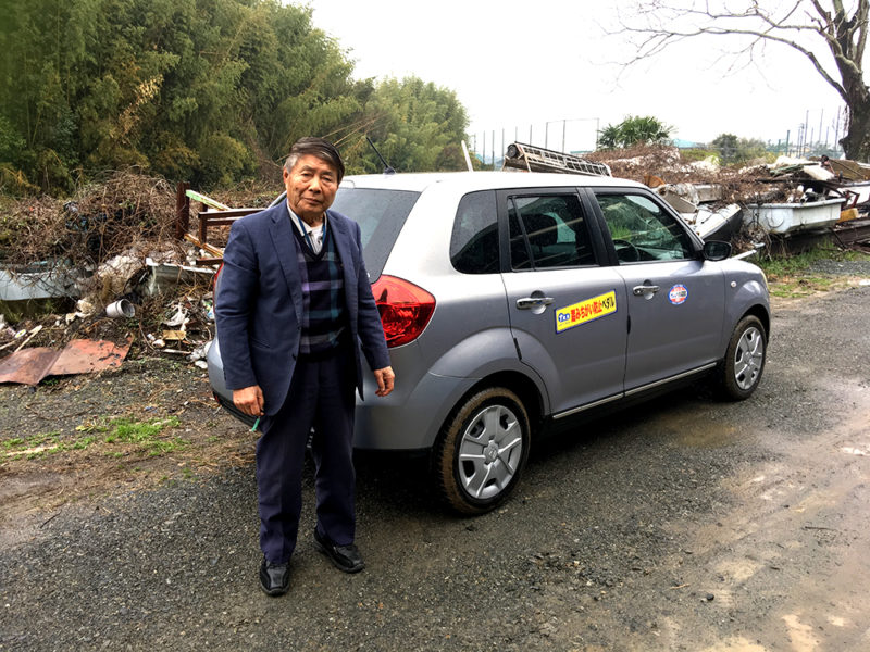 ワンペダル普及試乗車を案内する鳴瀬社長。