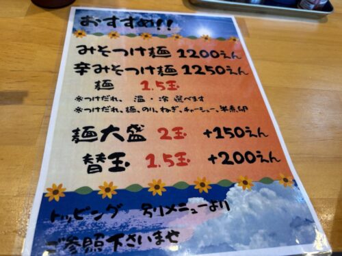 みそのつけ麺というのも気になります。