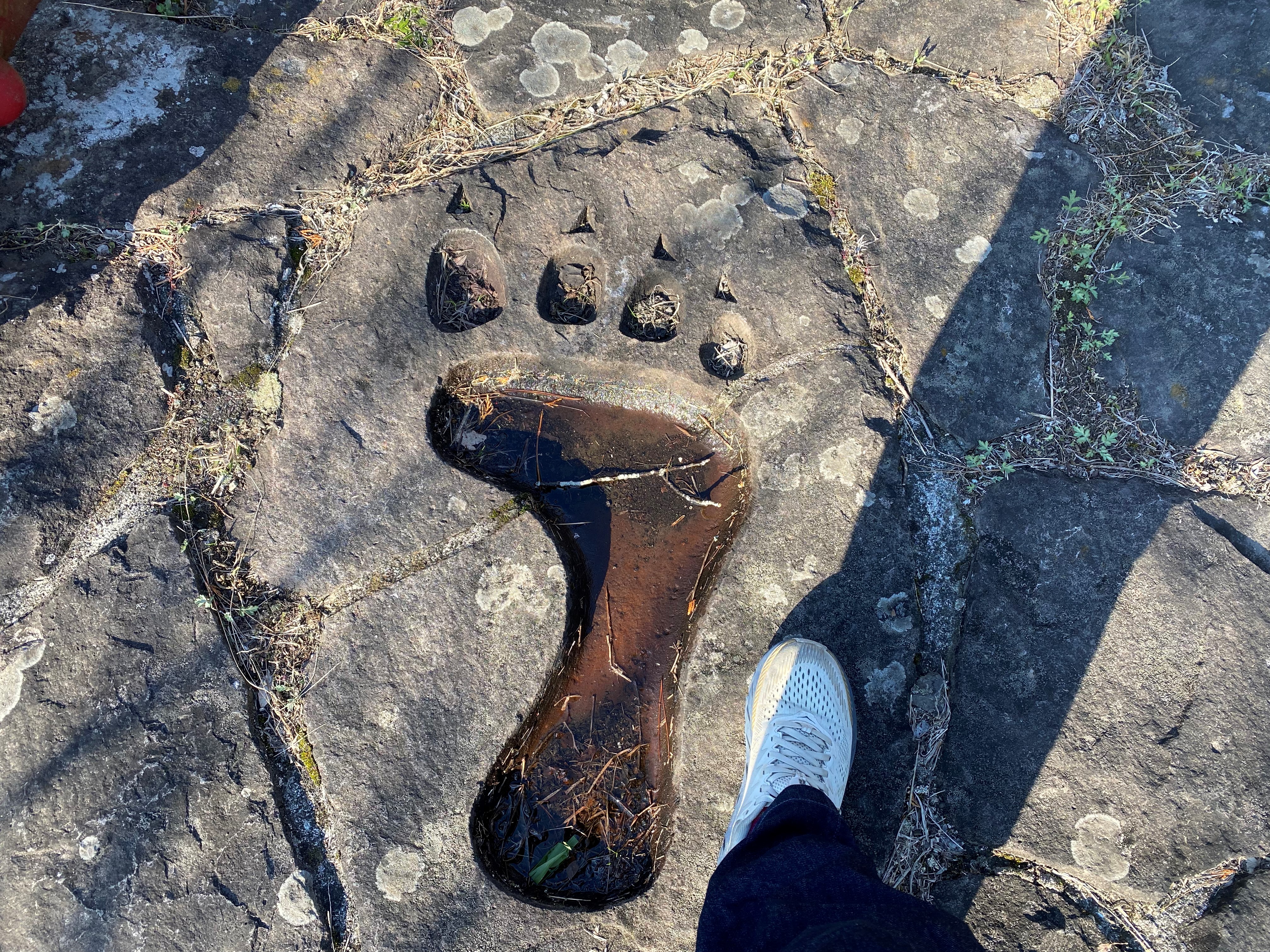 鬼の足跡あるもん、足でかいよ、そりゃあんな大きな金棒だってひょいと持ち上げられるよ。