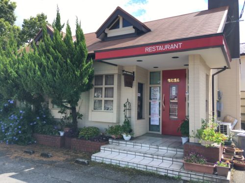 こちらが御船町にある「レストランおにおん」。赤い屋根のかわいいお店で、昭和58年から営業されている洋食屋さんです。