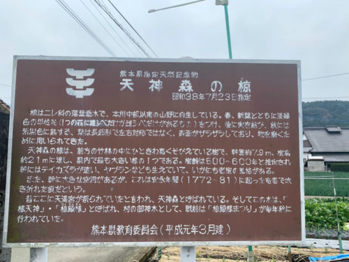 平成元年製の立て看板には、熊本県指定天然記念物の説明が書かれています。