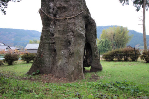 鎮守の森や大きな本殿などはなくても、今なお村のご神木としてここに立っているのだな、と感じる風景でした。