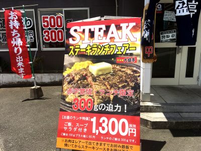 たまたま仕事の移動で近くを通った際に、「ステーキランチフェア」の看板を発見!