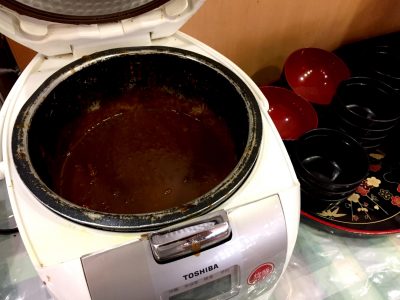 あ、カレーだ!炊飯器の中にカレーが入っています。