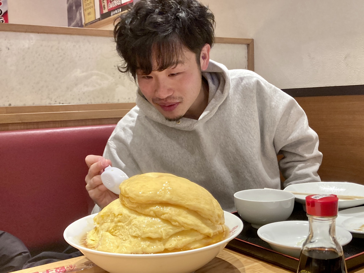増量ふわとろ天津飯にチャレンジするのは中年の星、伊藤。