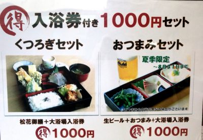 温泉とお食事のセットも千円とお得!温泉が大人550円ですので、お手頃ですよね!