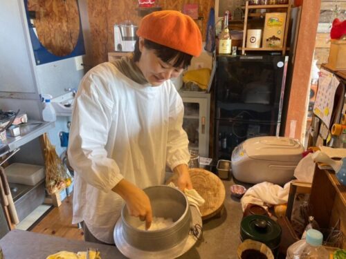 ベレー帽に割烹着がよく似合う、ふわっとかわいいユキコさんは、なんと壱岐出身。