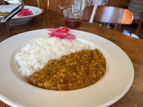 美味しい白ご飯の横には、お肉たっぷりのキーマカレーがたっぷり!