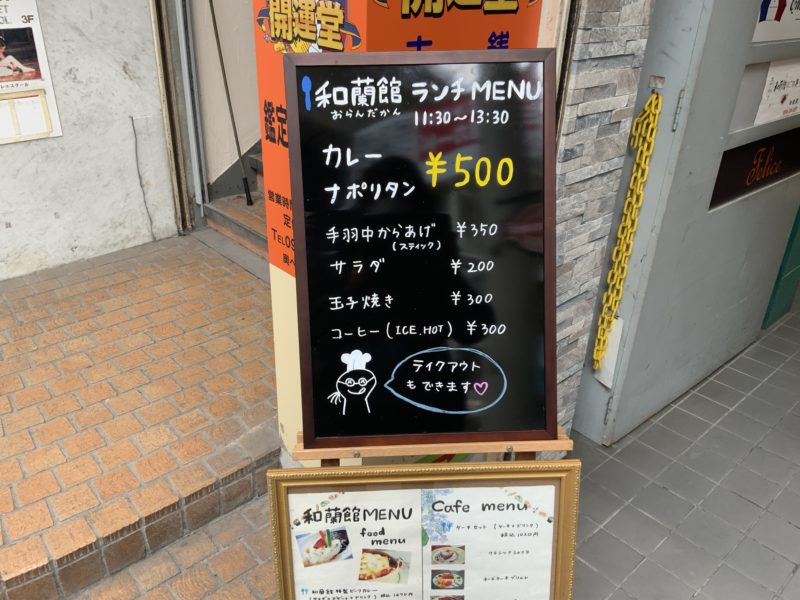お店の名前は「和蘭館」。ランチタイム限定でカレーやナポリタンが500円で食べられるそう。今どき街中でワンコインランチをお目にかかれるとは!早速入ってみましょう!