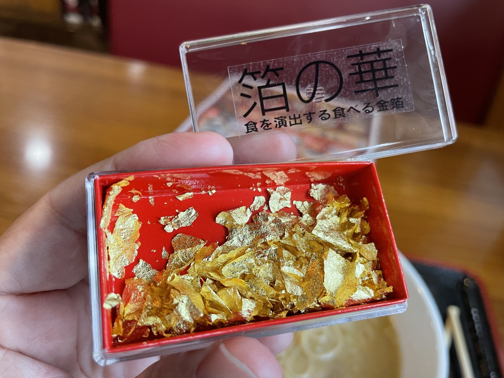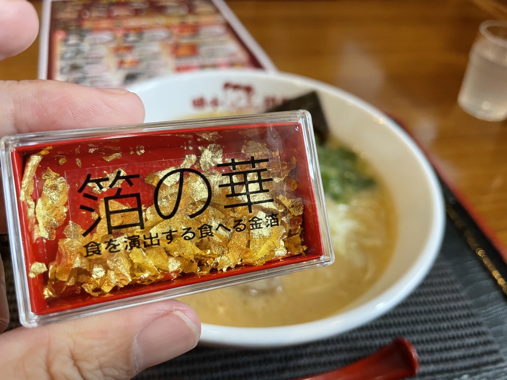 味を例えるなら、久留米系のラーメンに近い気がします。にんにくを控えたい方やお酒飲んだ後にコッテリ豚骨はキツイという方にはいいですね。金箔による味の変化はありませんが、気分に変化はあります。