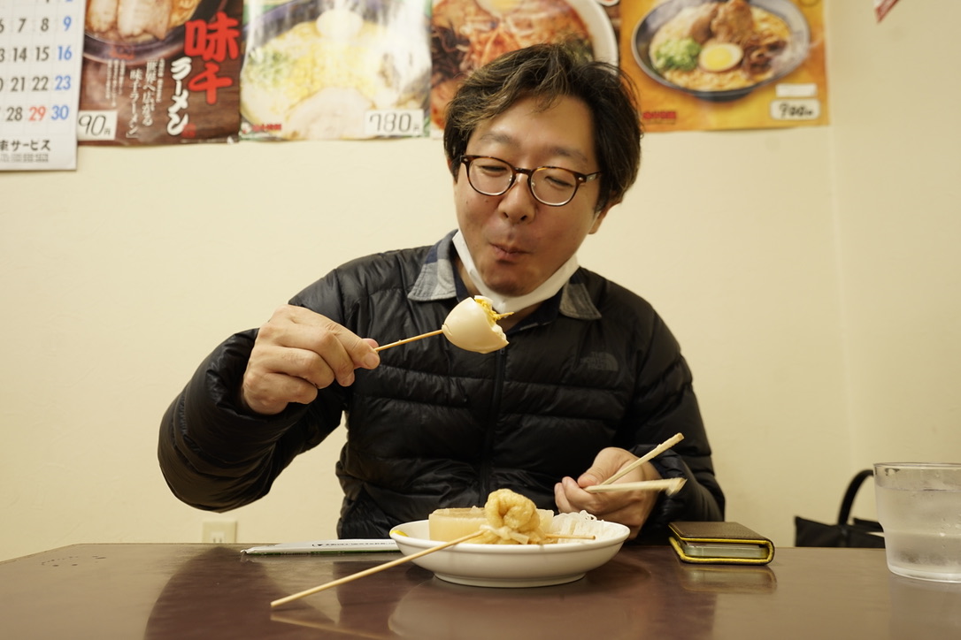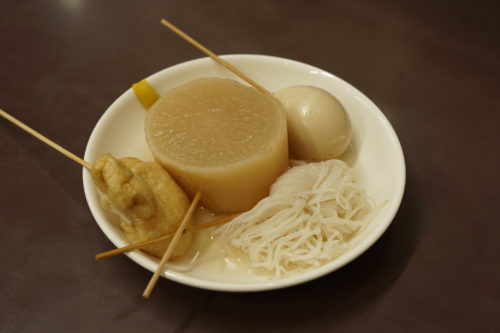 選ぶ楽しみがたまんないっすよねー。大根と餅巾着と…