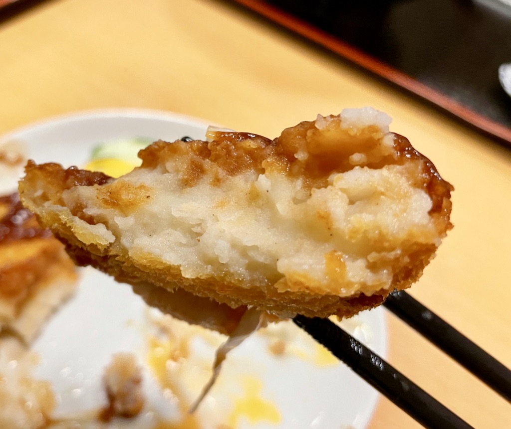 ザクッと衣からの、フワッとした食感。濃いソースに負けないジャガイモの味が、ご飯〜コロッケの無限ループへ誘います。