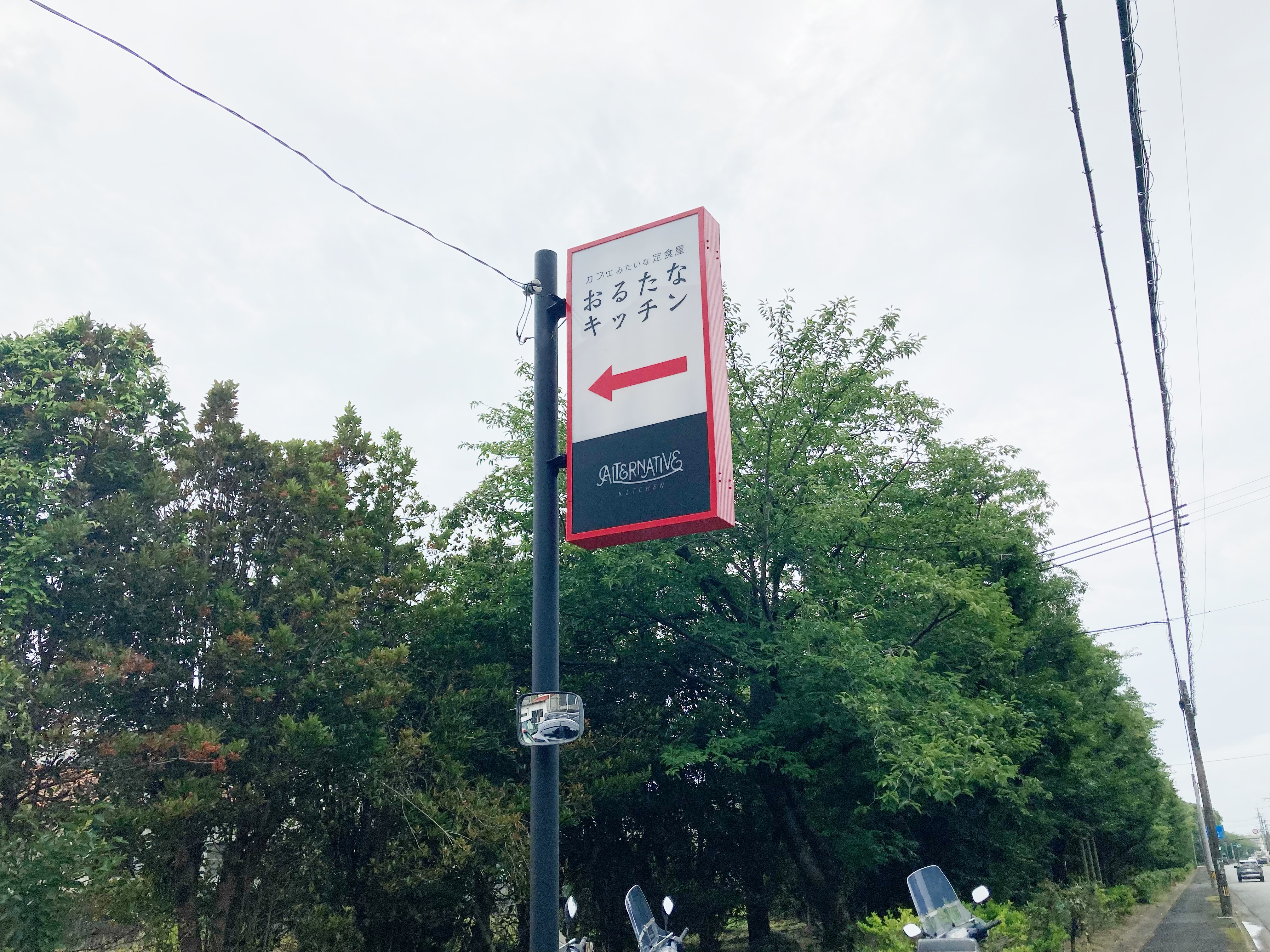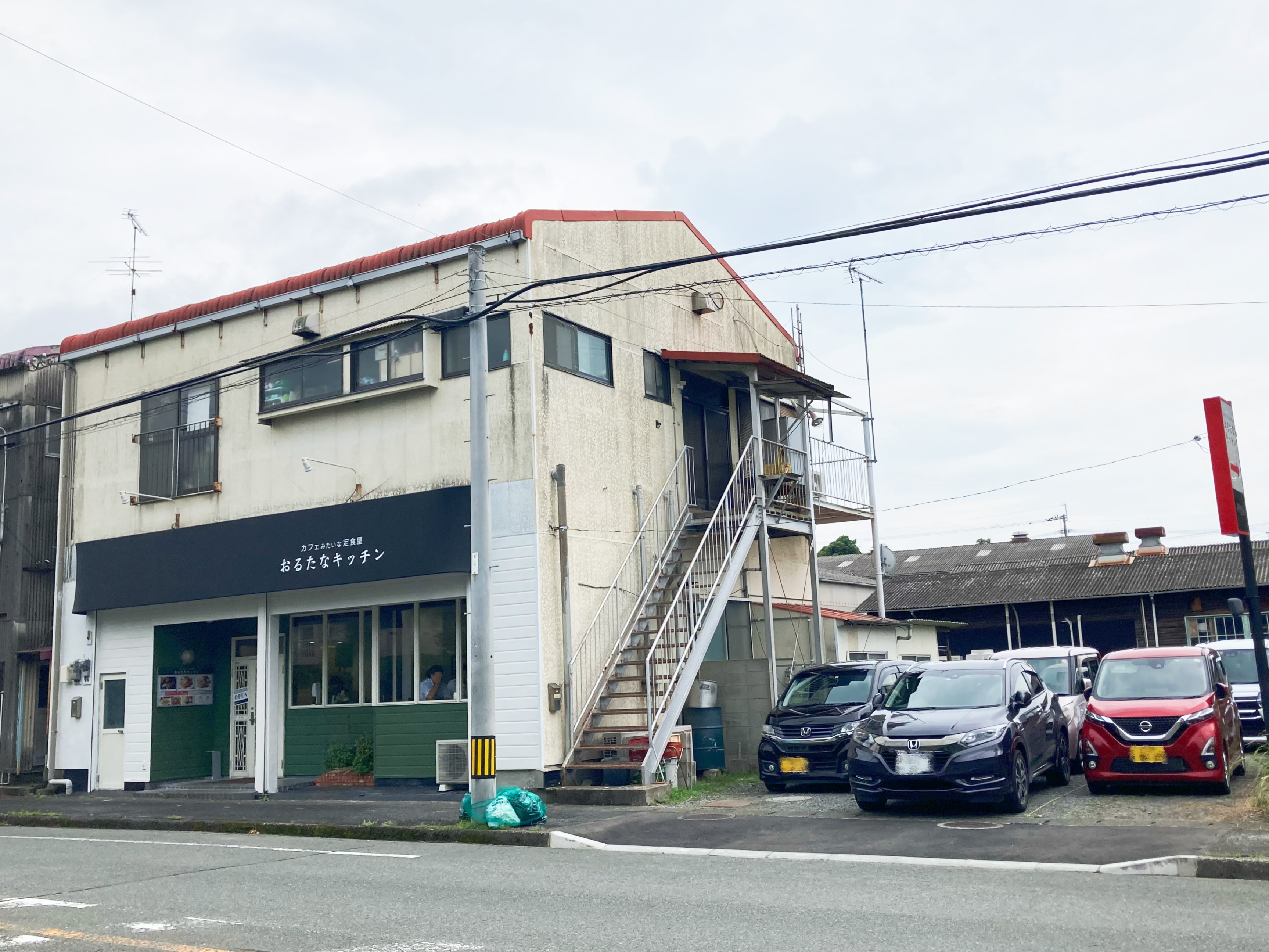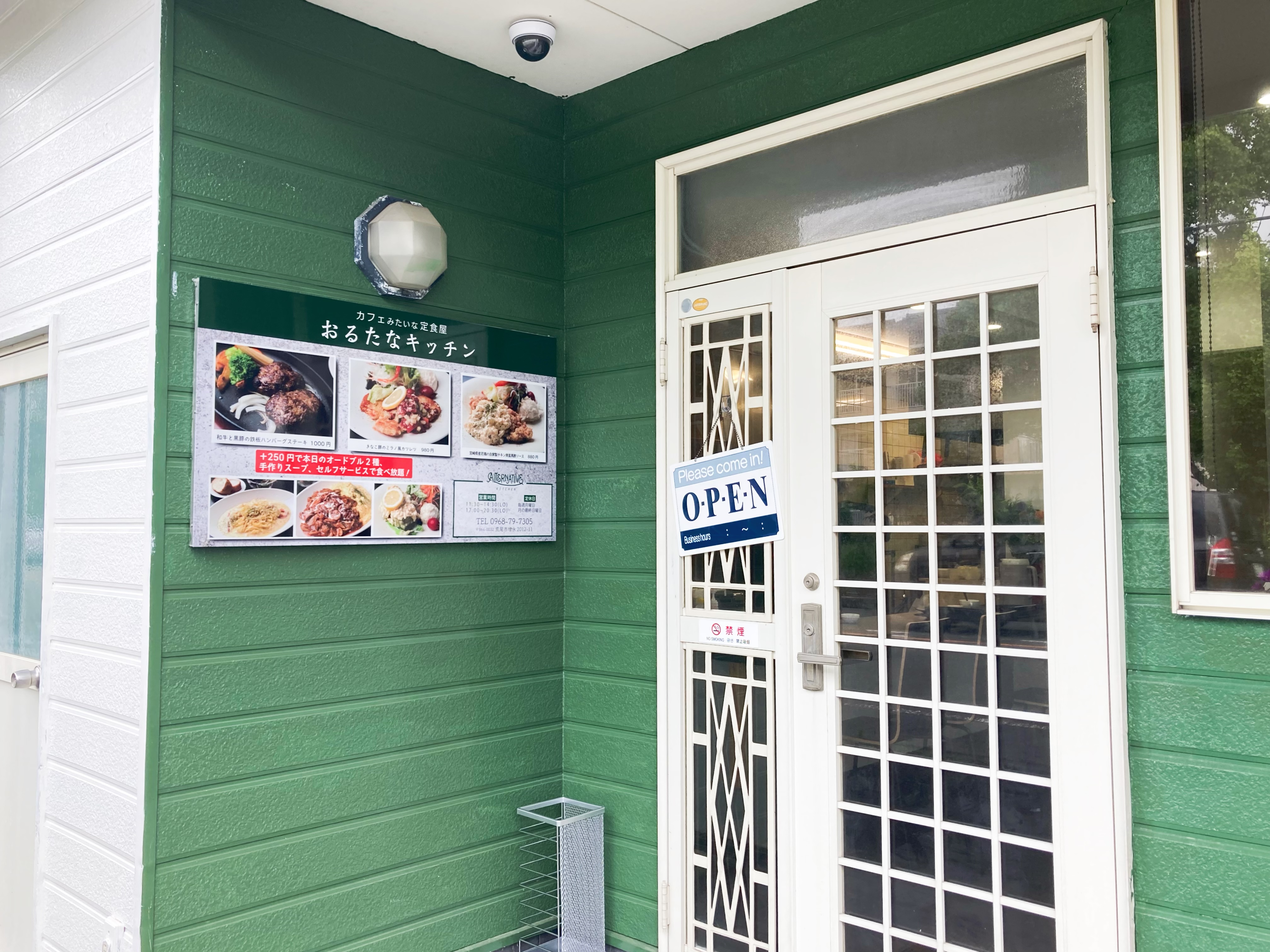 カフェみたいな定食屋「おるたなキッチン」、グリーンの壁が印象的なお店です。