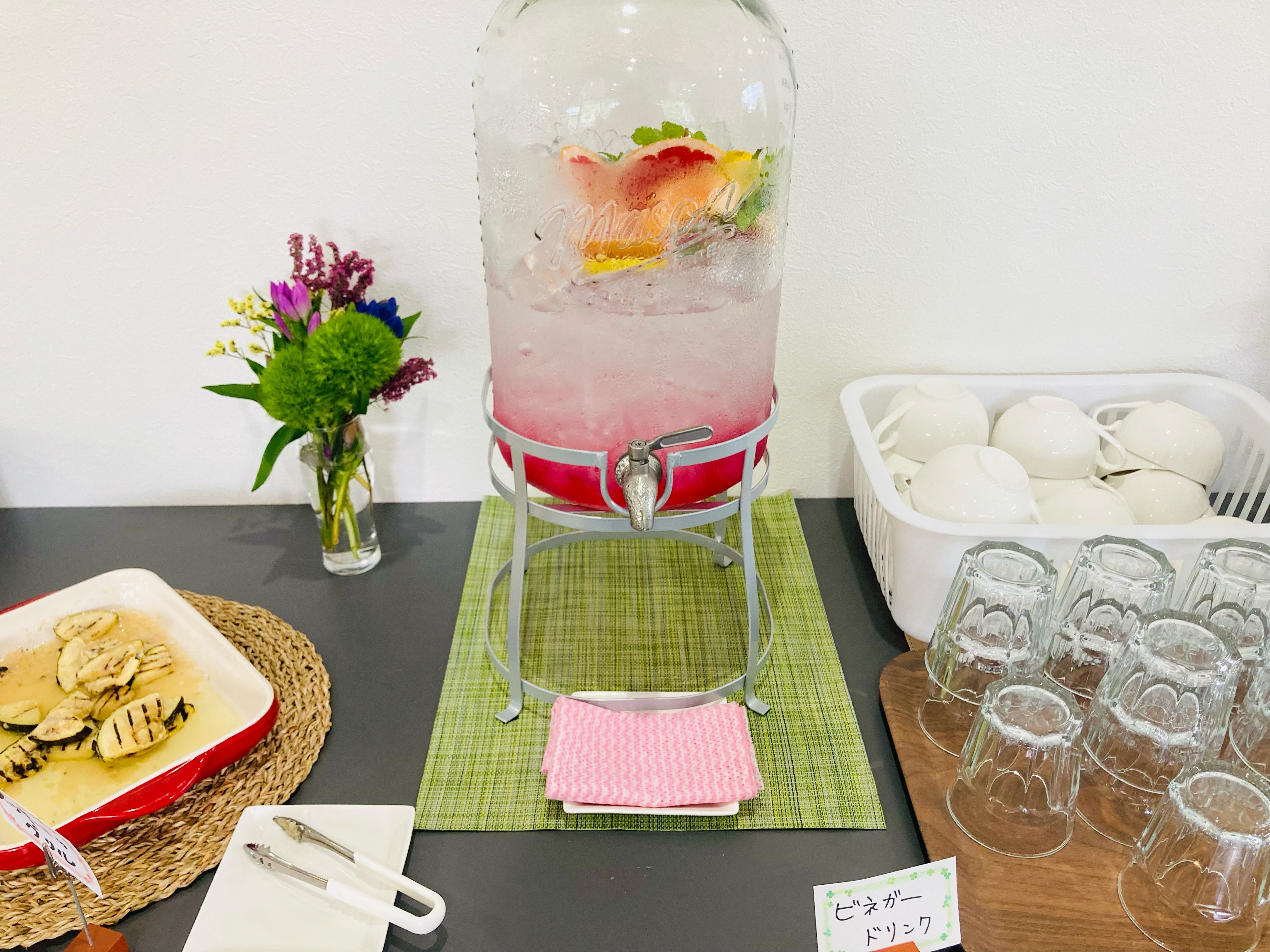 さらには、ビネガードリンクまでも飲めます。嬉しいサプライズ。これは夏季限定だそうですが飲み放題!サービス良すぎ。