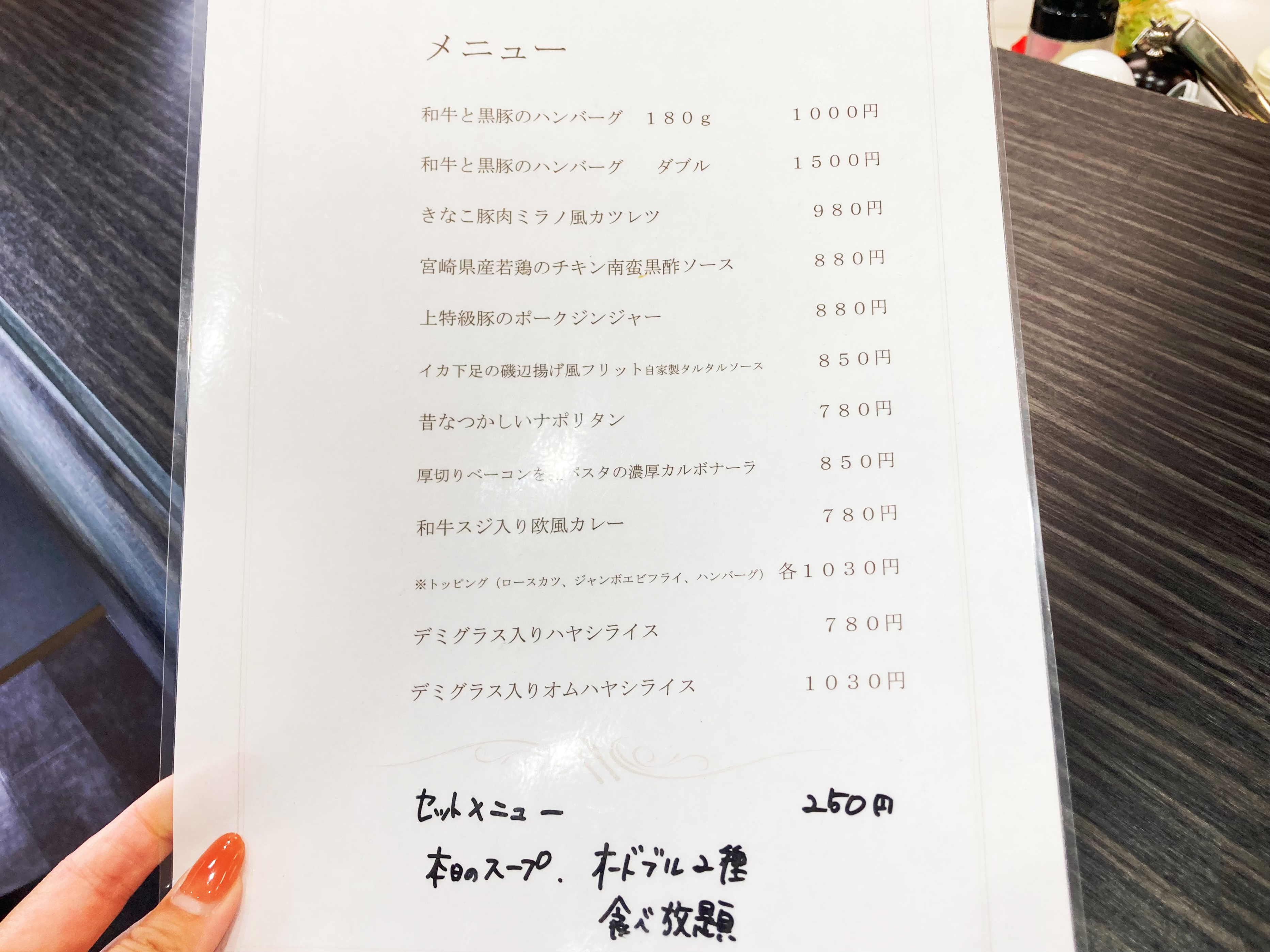 ランチメニューはこちら。みんな大好きな洋食メニューが並んでいるではありませんか。美味しそう。