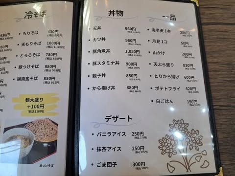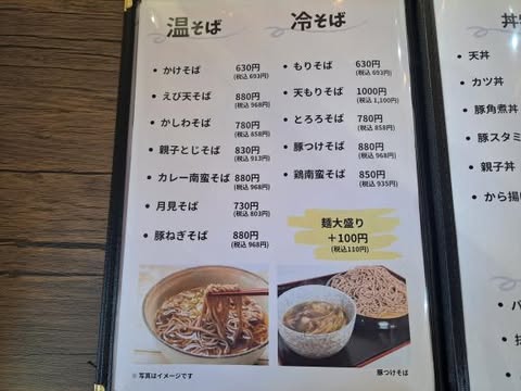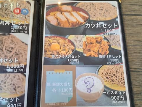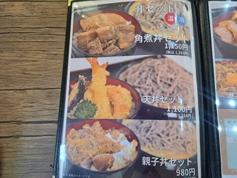 表紙をめくると蕎麦と丼のセットが
