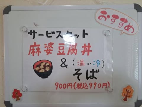 (サービスセットの内容はその日によって変わります。取材日は麻婆豆腐丼と蕎麦のセットでした。)